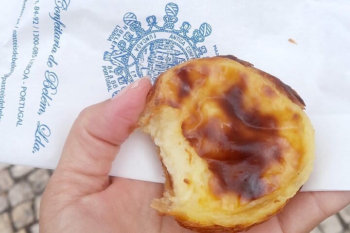 A well spent morning or afternoon with a taste of the typical sweet of Belém, the pastel of Belém, so typical of Portugal.